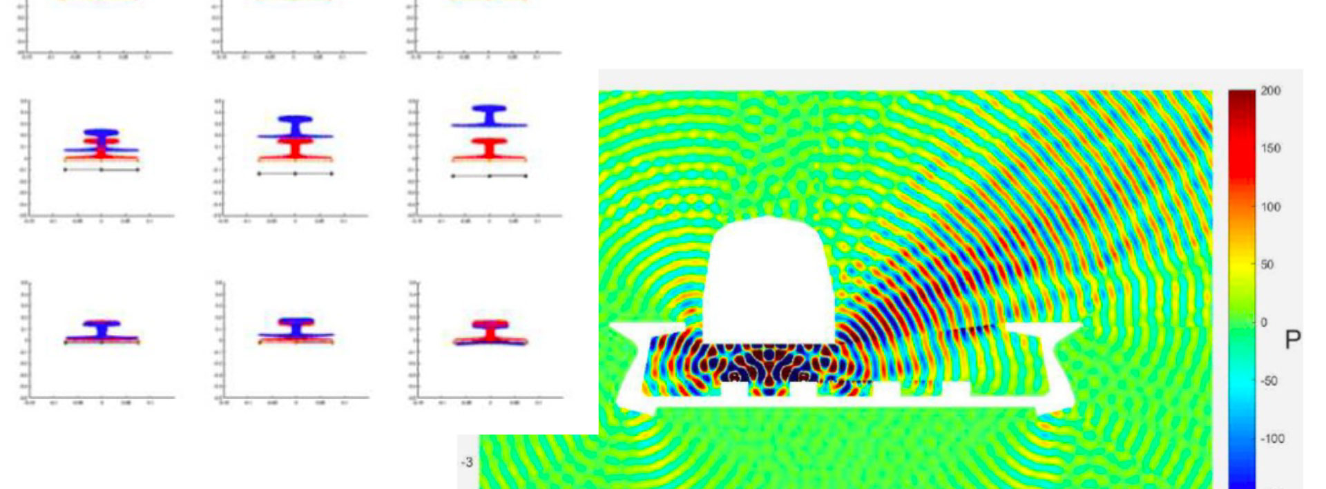 Concernant le volet de la mise en œuvre des outils numériques, il s’agit de développer des solveurs capables de simuler la propagation des ondes large-bande (MF et HF) et de prendre en compte les aspects multi-échelles des milieux de propagation. Les deux types approches en temporel (FEM, DGM, SEM, …) et en fréquence (TVRC, SAFE, …) sont considérés. Le calcul parallèle, un couplage judicieux entre les deux types de solveurs temporels et fréquentiels, l’application des méthodes de réduction de modèle (PGD, réduction modale, …), constituent des pistes à exploiter afin de développer un ensemble d’algorithmes/solveurs performants pour la résolution directe ou inverse des problèmes d’ondes et de vibration.